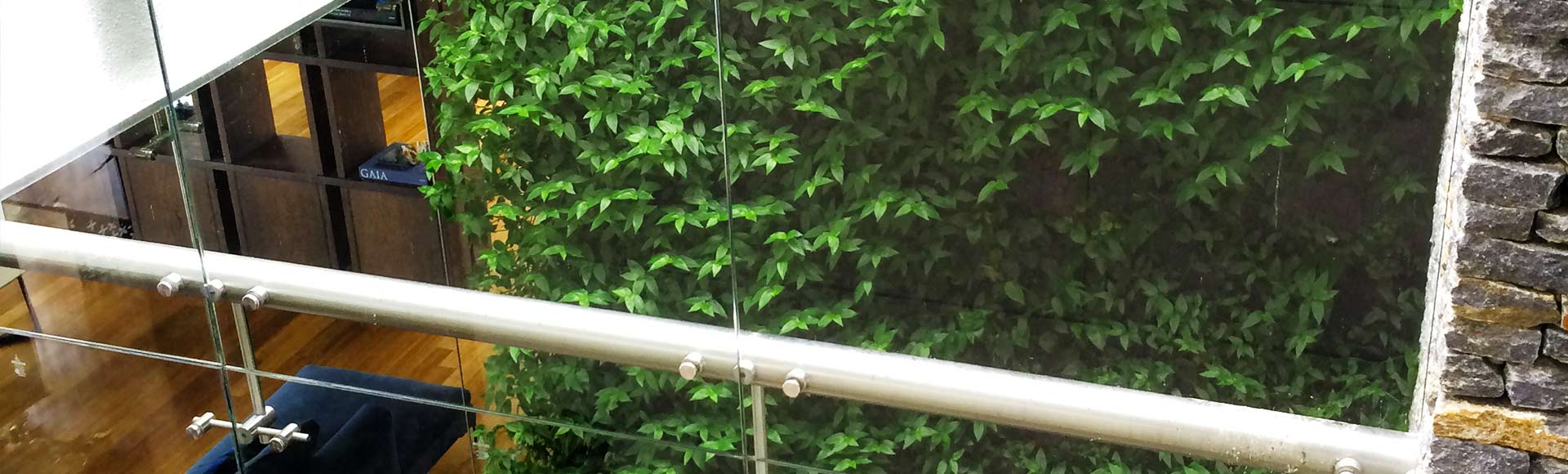 Para realizar este jardín de 31 metros cuadrados se utilizaron más de 900 plantas pertenecientes a cuatro especies diferentes. Su finalidad era la de amenizar con plantas el ambiente y mejorar el aspecto del muro de la sala principal.
