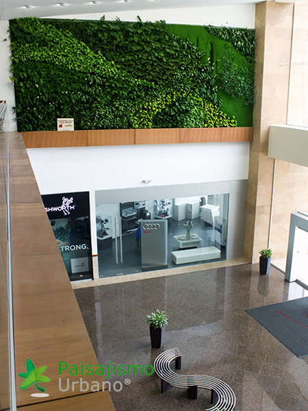 Paisajismo Urbano ha realizado para este edificio tanto jardines verticales exteriores como interiores. Nuestros socios de Greenstar han apostado con este proyecto por la arquitectura sustentable.