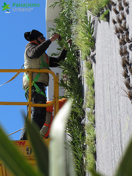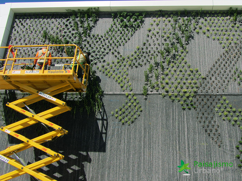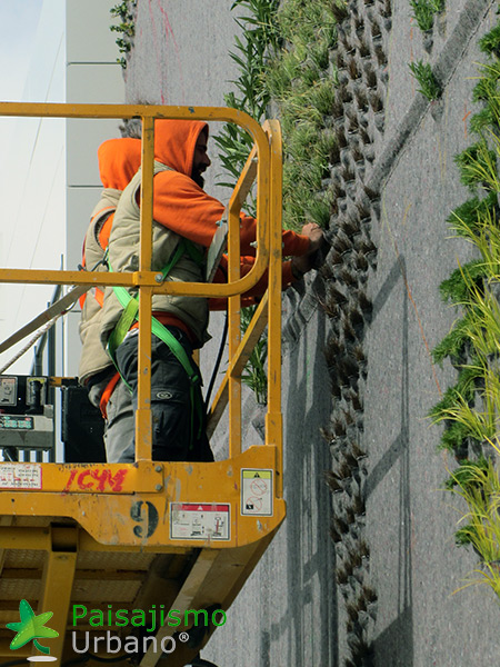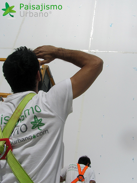 The installation of this green façade was carried out in two phases due to the local weather conditions. The total time taken to complete the entire garden was 18 days.