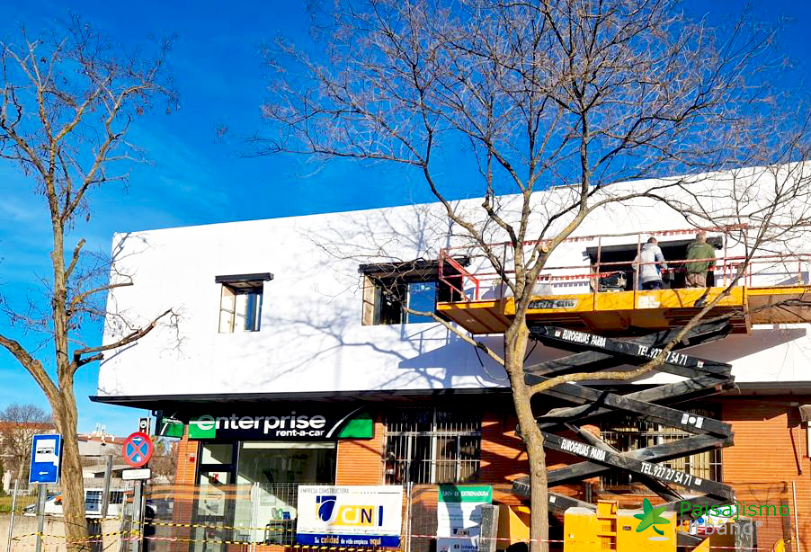 Este jardín vertical forma parte del exterior de la estación de autobuses de Cáceres y mide 150 metros cuadrados compuesto por más de 8.000 plantas.