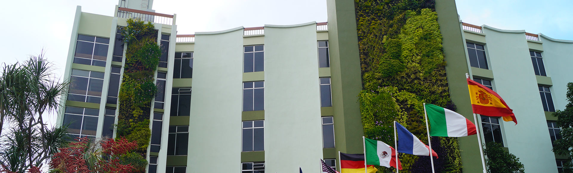 Las formas de estos jardines verticales simbolizan la cultura local mediante diseños que representan los coloridos tejidos típicos, con gotas de agua que nacen del bello lago de Atitlán, ubicado tras el edificio. El tiempo de ejecución fue de 6 semanas.