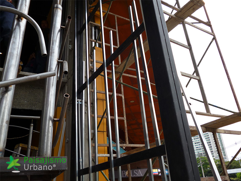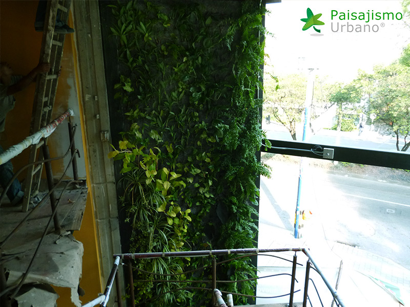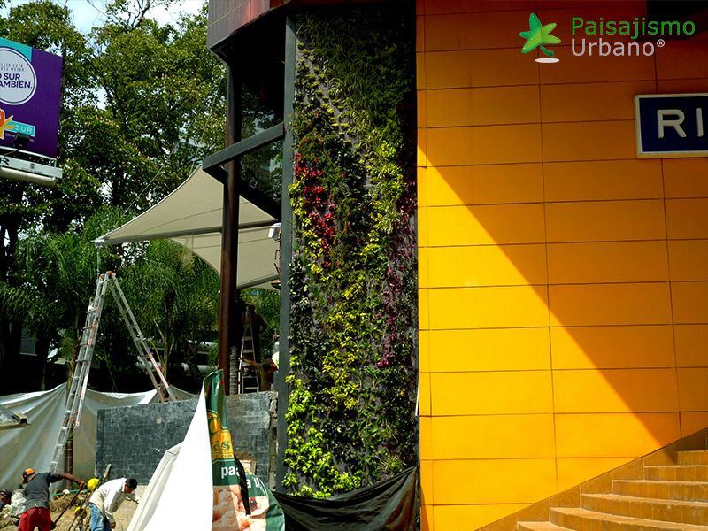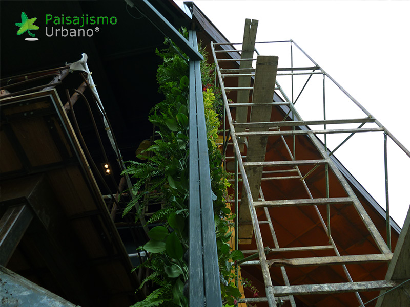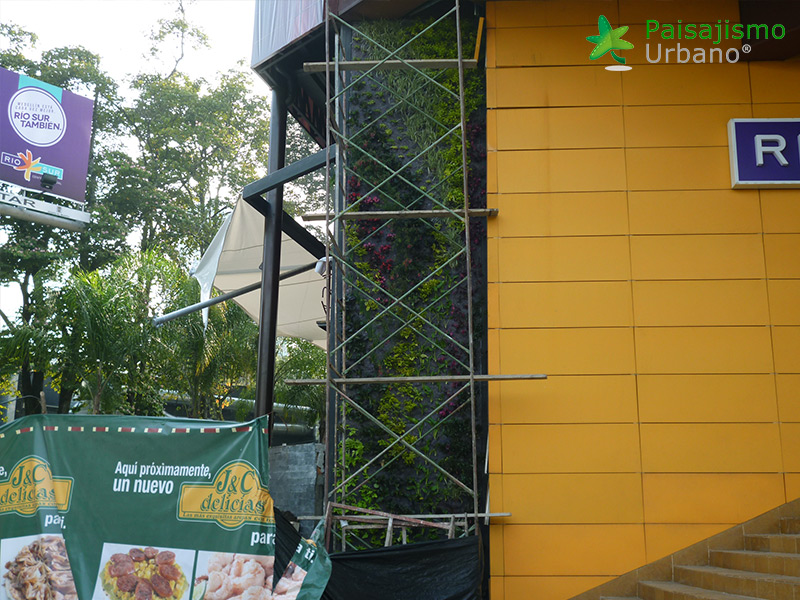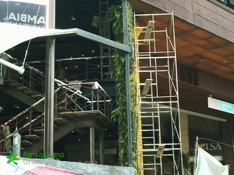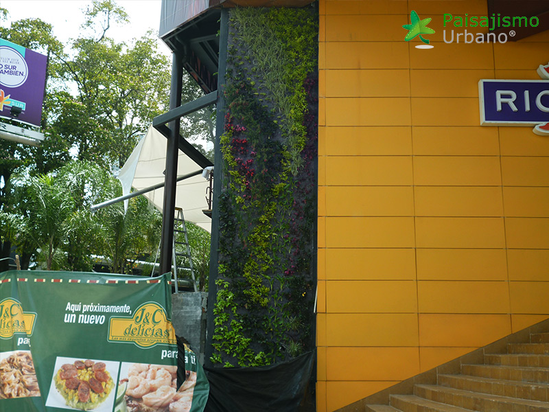 Este pequeño jardín vertical de 26 metros cuadrados, para el restaurante J&C Delicias, se encuentra en la zona oriental de la ciudad de Medellín, con orientación este.