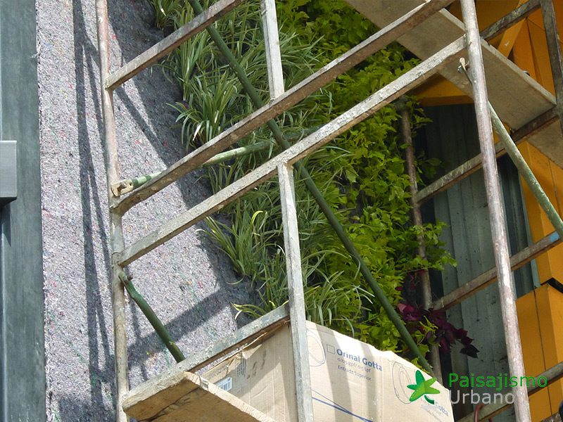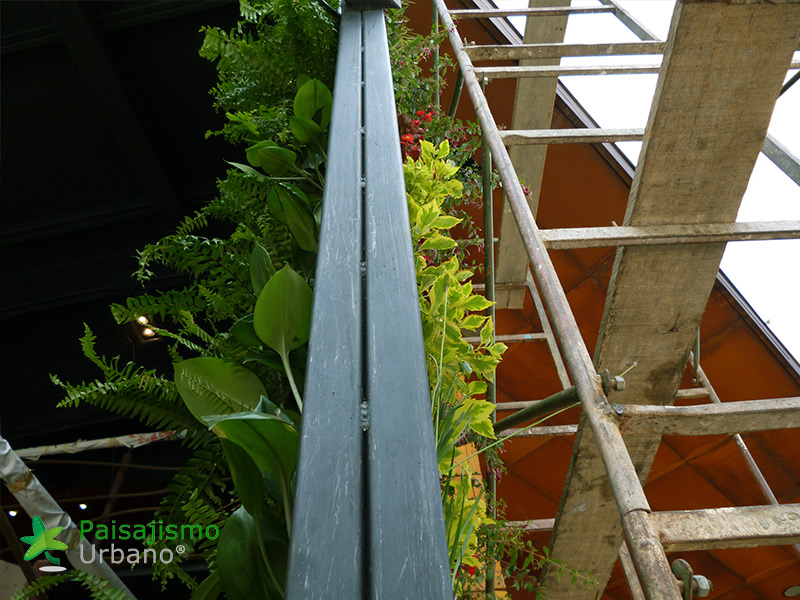 Este jardín vertical tiene la peculiaridad de ser a dos caras, cada una de 2,5 metros de ancho por 8 de alto. La exterior se ha plantado con plantas de requerimientos lumínicos altos y la interior con especies de sombra. Un jardín vertical que los visitantes de este restaurante disfrutan en cada una de sus visitas. Otro proyecto más de Groncol y Paisajismo Urbano.